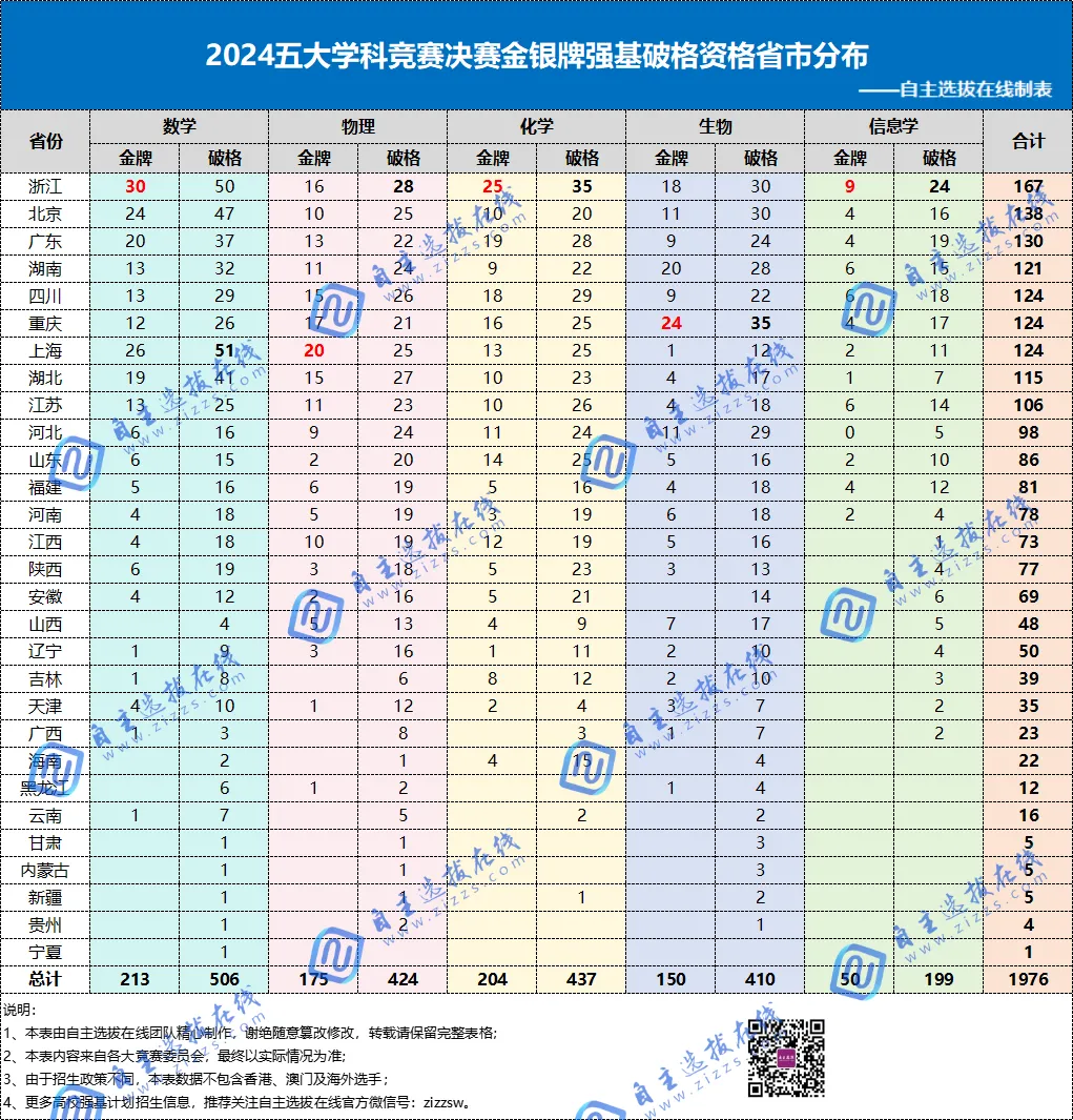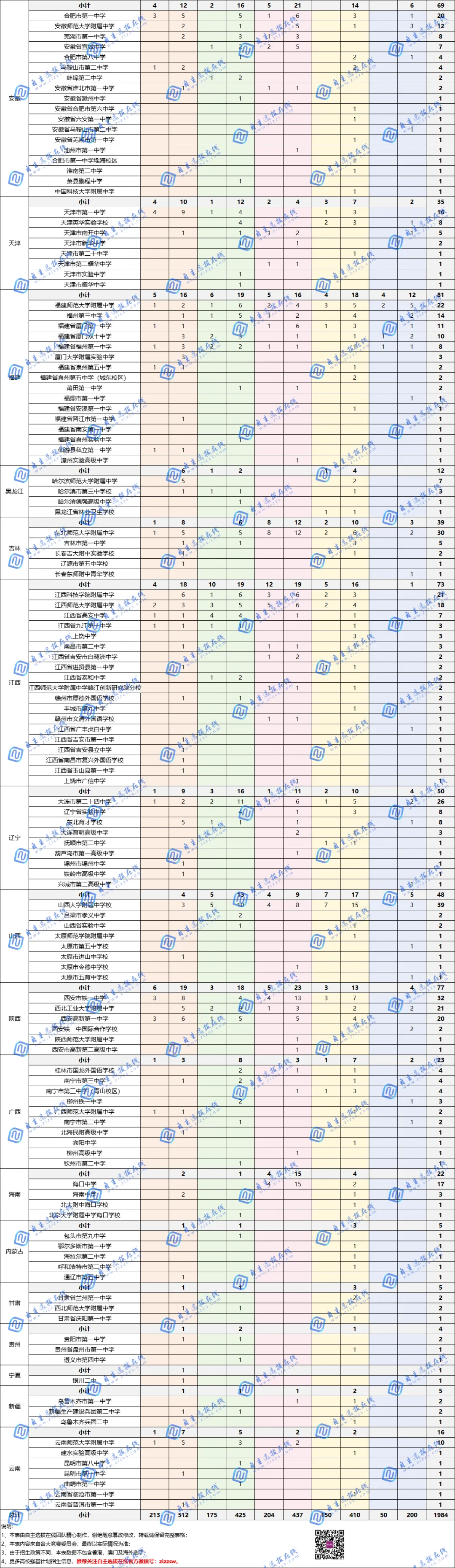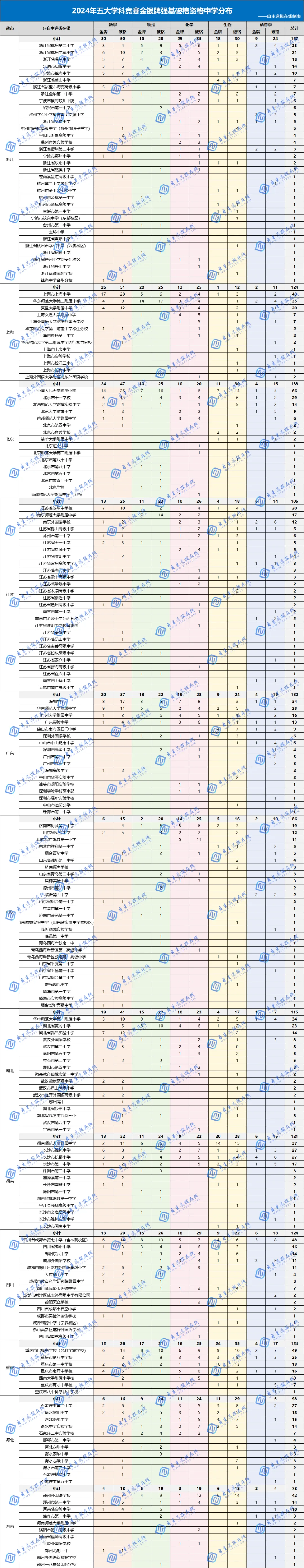 2024五大学科竞赛省市、中学分布情况