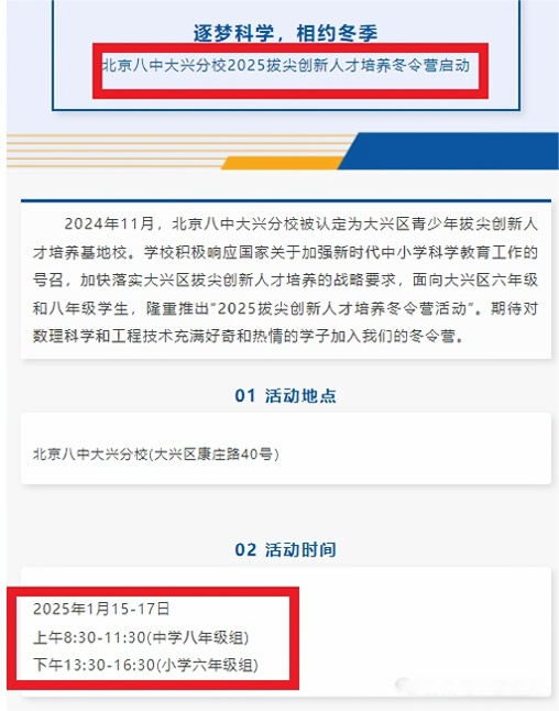 2025昌平二中拔尖创新人才活动报名2025-01-09