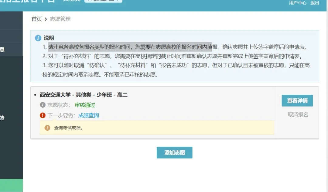 1月20日,2025西安交通大学少年班初审结果公布,有不少同学和家长都接到了初审通过的通知。自主选拔在线提醒考生及时查询结果、选择报考考点和完成缴费。