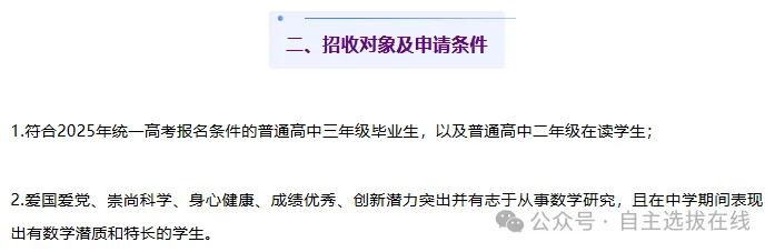 1️⃣在清华北大少年班:北京大学英才班、清华丘成桐数学英才班、清华数学领军计划、北大物理卓越、清华物理攀登等少年班招生对象中都会明确表示招收“具有数学、物理等学科潜质和特长的学生”