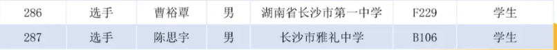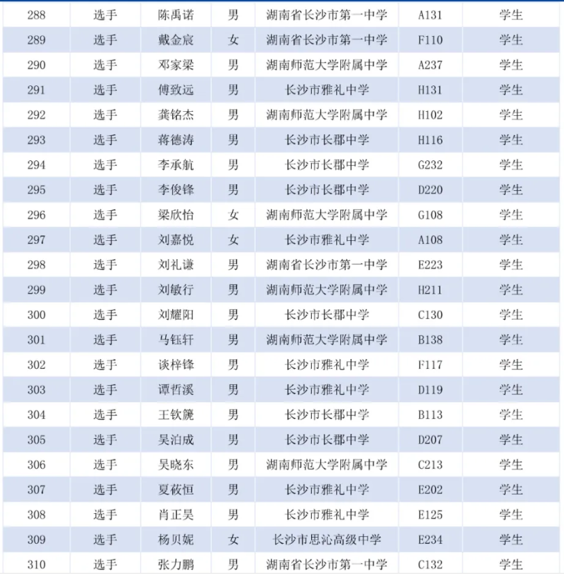 2025年第39届中国化学奥林匹克(决赛) 湖南省代表队名单