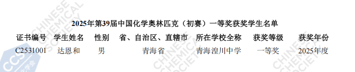 推荐阅读:2025年第39届全国中学生化学竞赛初赛获奖名单汇总