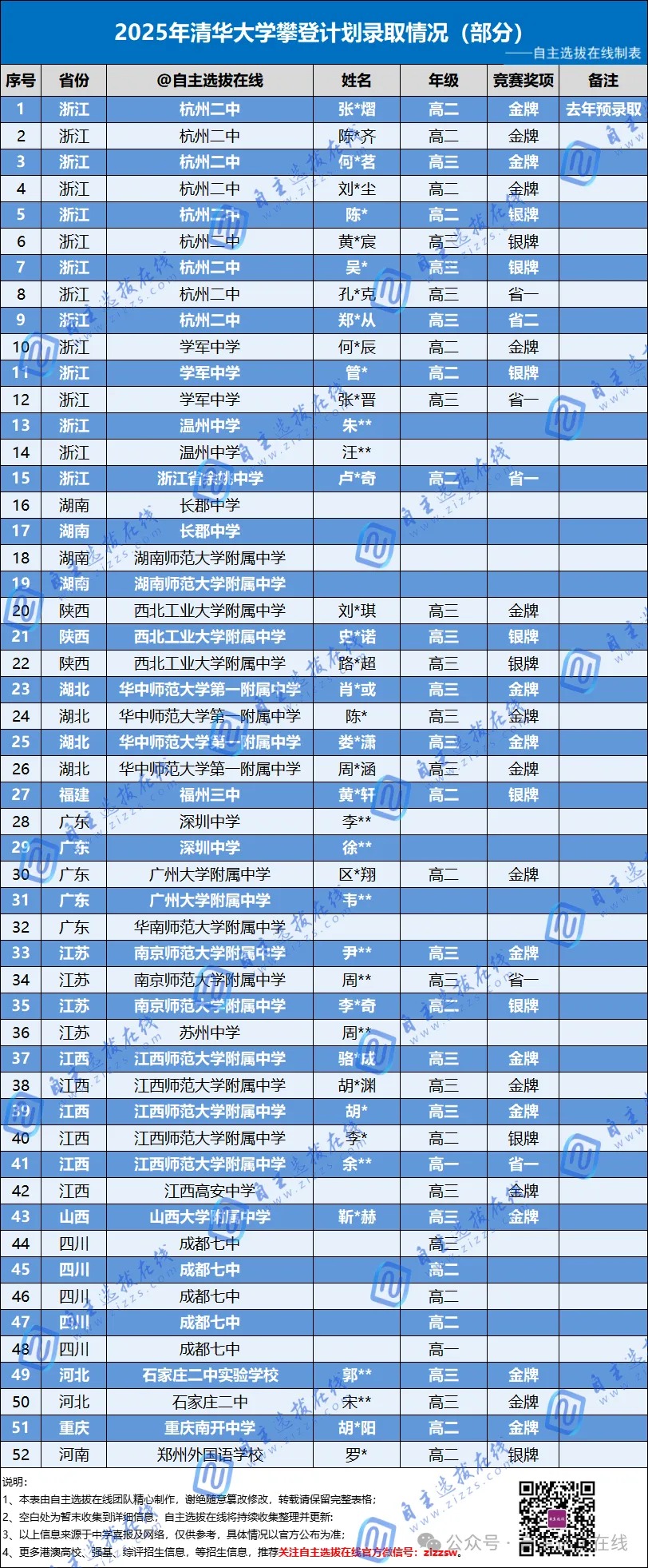 根据2025年清华物理攀登计划的部分录取情况,我们可以观察到:超过半数的被录取同学拥有竞赛背景,其中金银牌背景占据了大多数,也有一些同学具备省一或省二的竞赛荣誉。