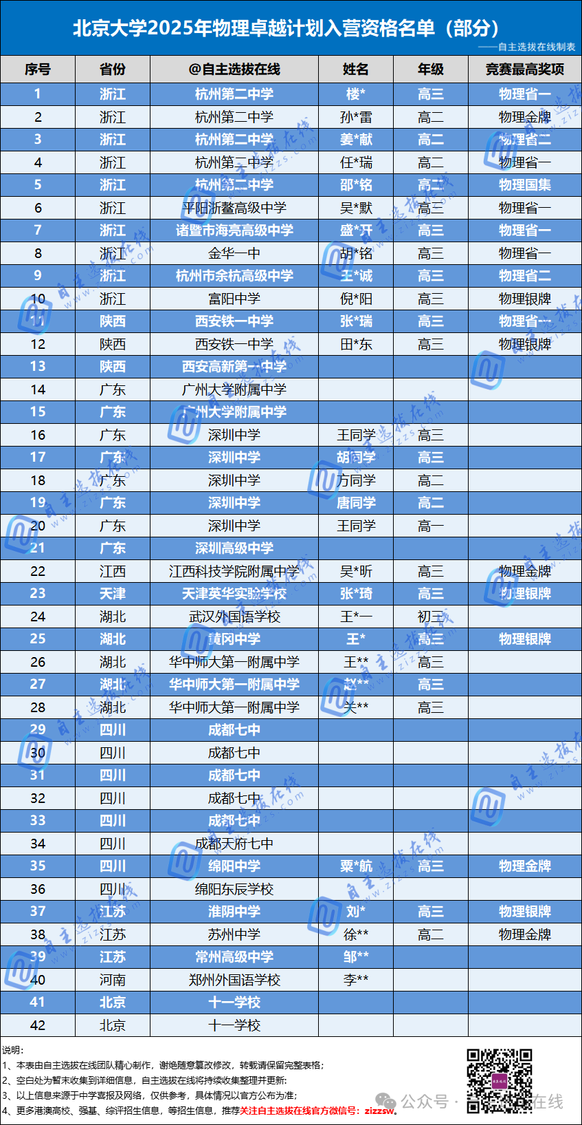 以下是2025年北大物理卓越计划的部分录取情况: