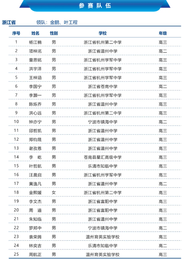 2025年第42届全国中学生物理竞赛浙江省省队名单官宣!25名顶尖学子脱颖而出,将代表浙江出征全国决赛,角逐金牌。自主选拔在线团队为您整理完整名单。