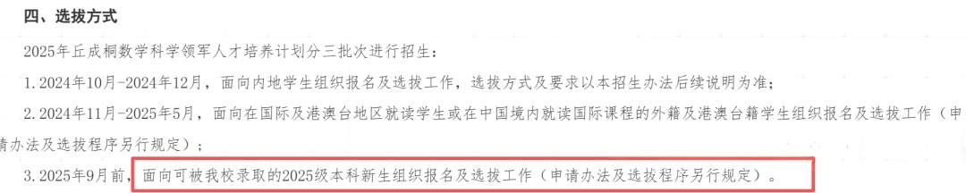 这个批次通常在高考后、新生入学前进行,针对的是已经通过高考被清华大学录取,但对数学有强烈兴趣和特长的新生,为他们提供一次进入求真书院的机会。
