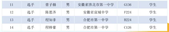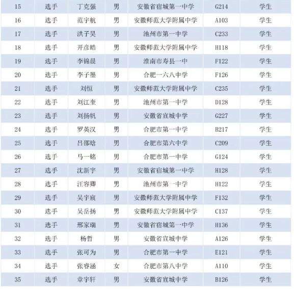 第39届中国化学奥林匹克(决赛)安徽省代表队名单