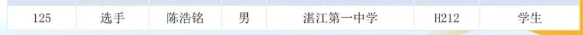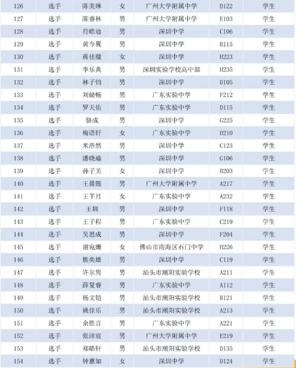 根据中国化学会核定结果,第39届中国化学奥林匹克(决赛)广东省代表队指标共30名,按照遴选规则(以初赛成绩排序)确定第39届中国化学奥林匹克(决赛)广东省代表队名单,具体结果如下。