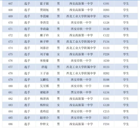 第39届中国化学奥林匹克(决赛)陕西赛区省队名单