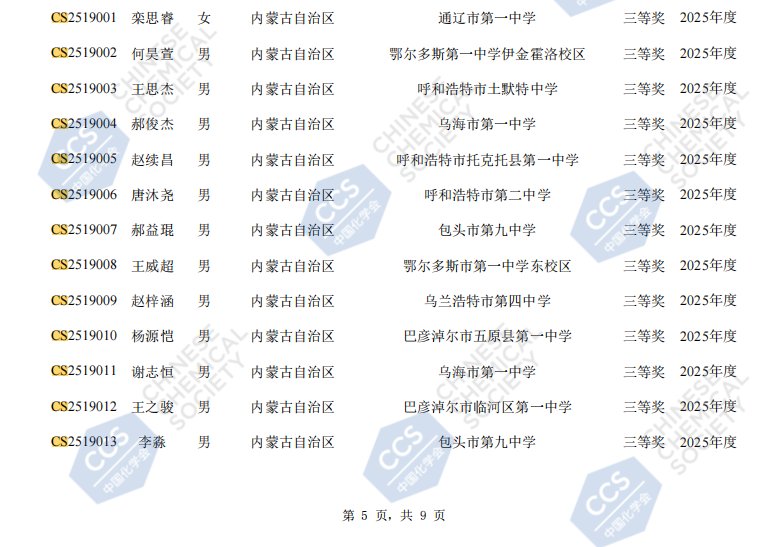 推荐阅读:2025年第39届全国中学生化学竞赛初赛获奖名单汇总