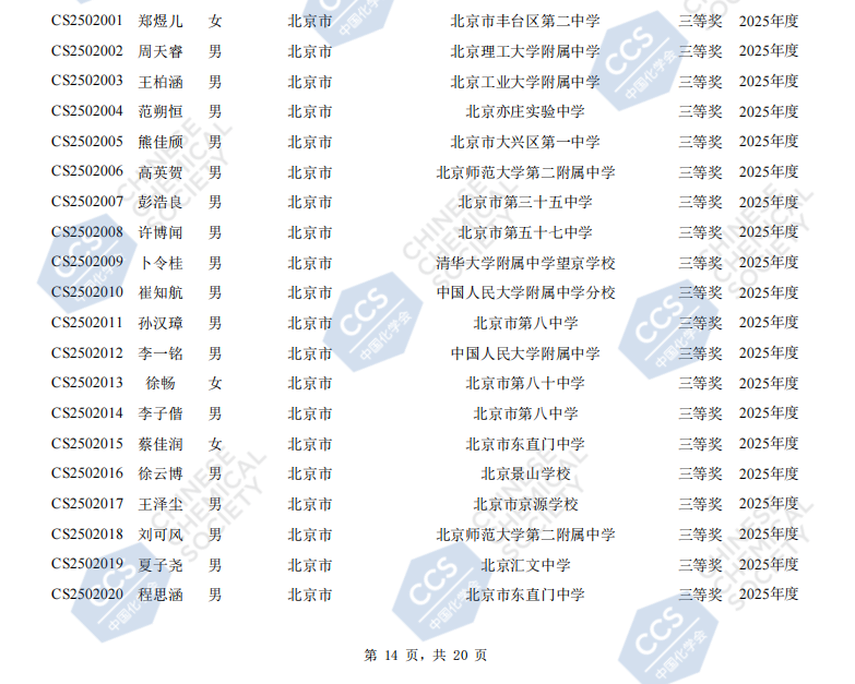 推荐阅读:2025年第39届全国中学生化学竞赛初赛获奖名单汇总