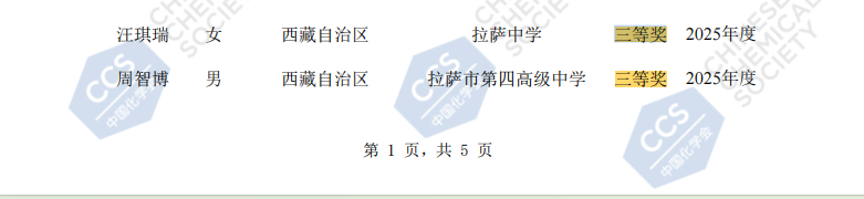 西藏2025年第39届全国中学生化学竞赛初赛省三获奖名单
