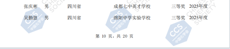 推荐阅读:2025年第39届全国中学生化学竞赛初赛获奖名单汇总