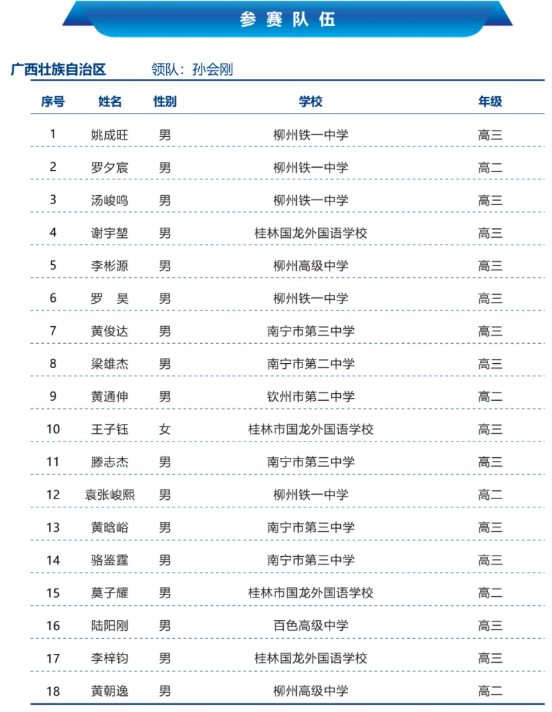 依据热心网友分享,广西2025年中学生物理竞赛复赛省队名单出炉,18名同学将代表广西参与接下来的全国决赛,自主选拔在线团队特整理相关名单,一起来看!