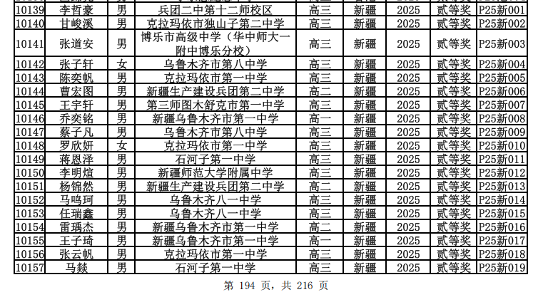 新疆2025年中学生物理竞赛复赛省二获奖名单