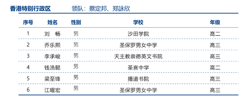 香港2025年中学生物理竞赛复赛省队获奖名单
