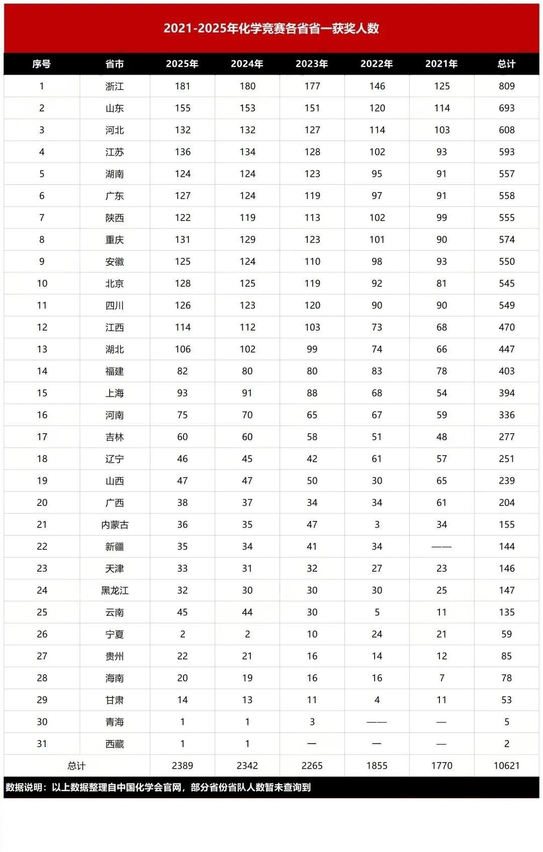 推荐阅读:2025年第39届全国中学生化学竞赛初赛获奖名单汇总