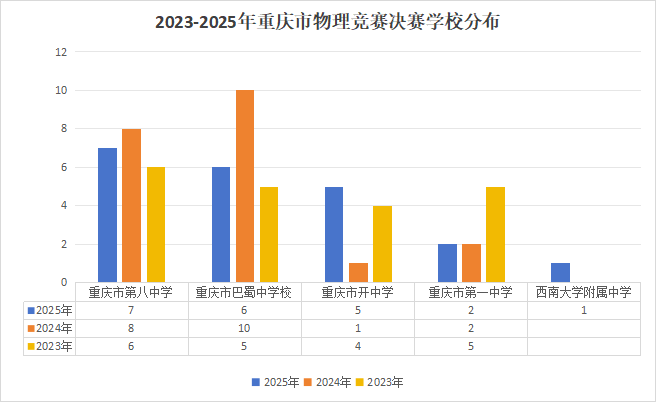 2023-2025年重庆市物理竞赛决赛学校分布情况,重庆八中发挥稳定