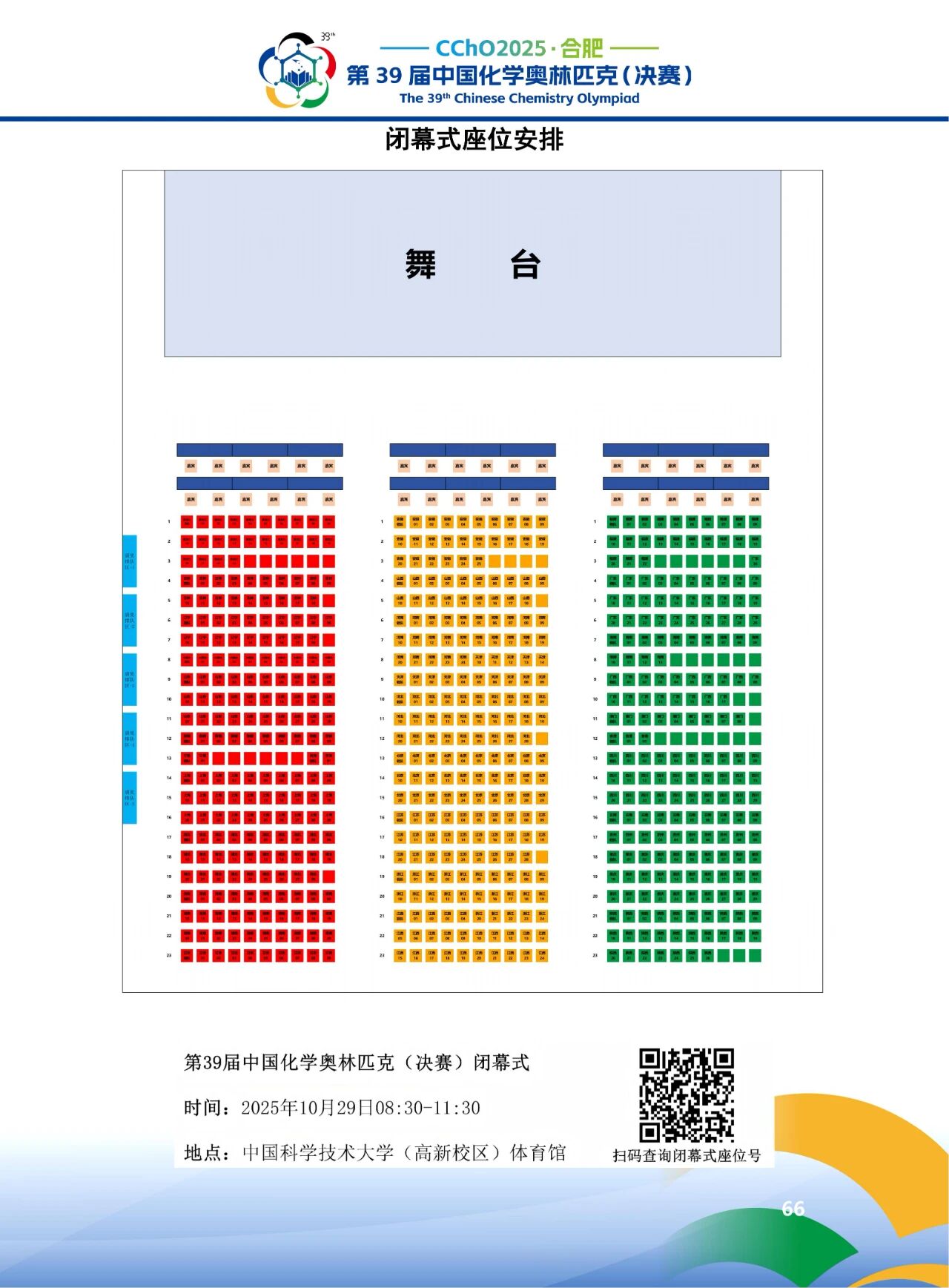 2025年第39届中国化学奥林匹克(决赛)于10月24日至10月29日在安徽省合肥市举行,将于29日举办闭幕式活动,同时将公布获奖名单,目前,闭幕式座位安排已经出炉,快来看看吧!
