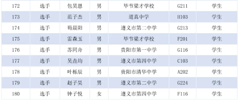 第39届中国化学奥林匹克决赛贵州代表队选手名单