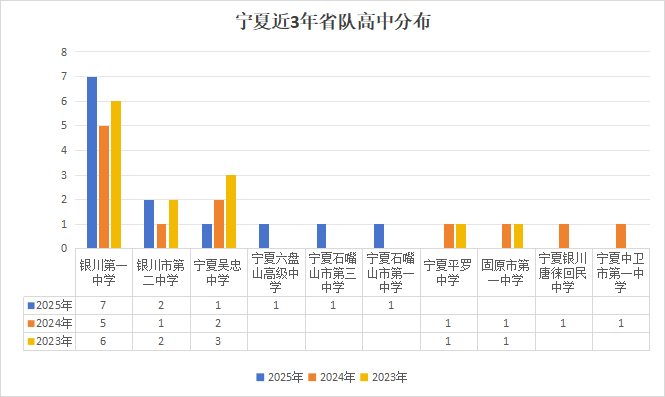 2023-2025年宁夏物理竞赛决赛高中分布情况