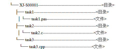 (2)在选手答案目录下,请选手将提交的用于测评的全部文件(源代码、有关答案等)直接放在以自己的考号命名的目录下以题目英文名称命名的子目录中。以选手XJ-S00001为例,答案目录的储存结构为: