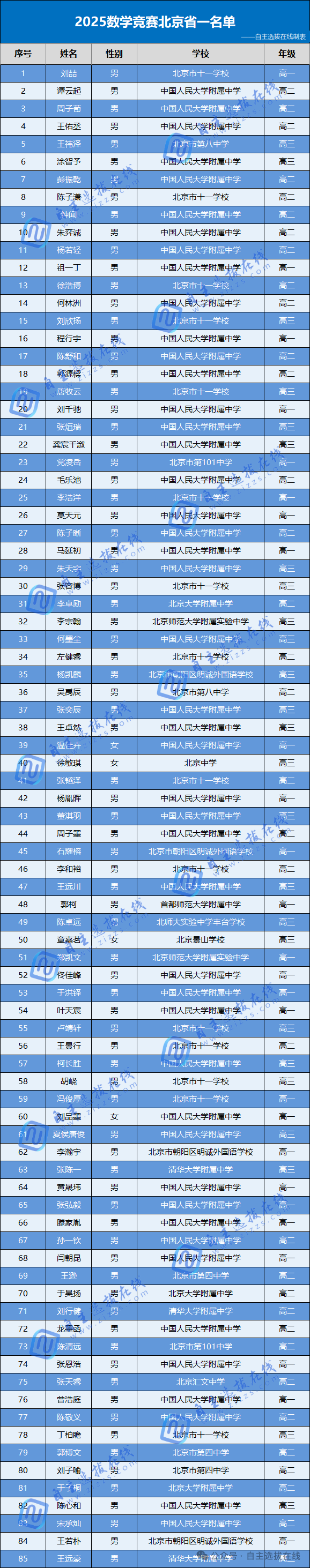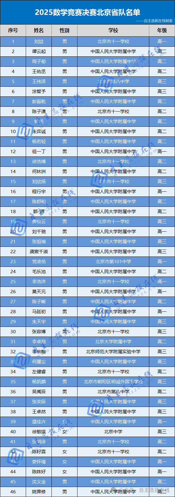 北京市2025数学竞赛省队名单分析