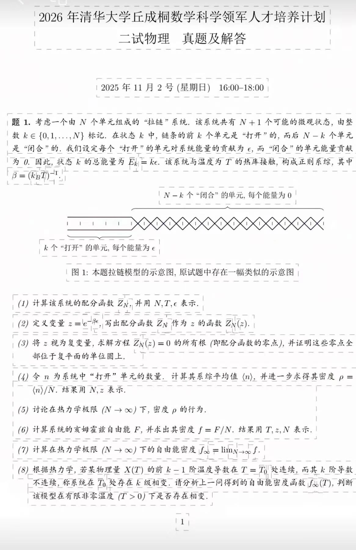 近日,清华大学丘成桐数学领军计划专业测试数学、物理考试结束。让我们一起来看看2026年清华大学丘成桐领军计划二试物理试题内容!