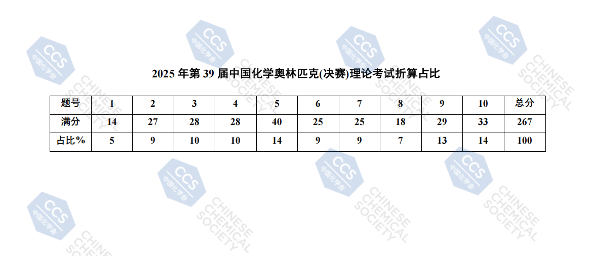 2025年第39 届中国化学奥林匹克(决赛)理论考试折算占比