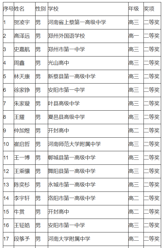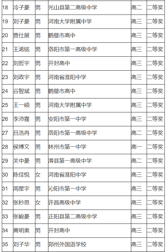 河南省2025年第41届全国高中数学联赛省二获奖名单