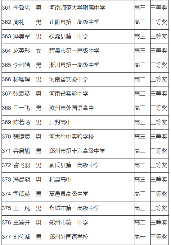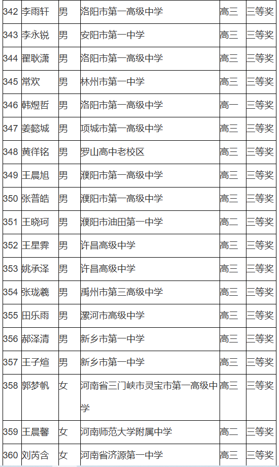 河南省2025年第41届全国高中数学联赛省三获奖名单