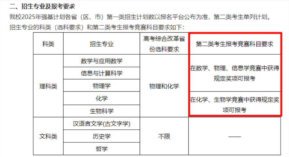 🌈特别提醒:2025年,哈工大和西安交大将第二类考生报名条件调整为金牌获得者。另外,部分高校要求第二类考生报考专业需与竞赛奖项相对应,如南京大学: