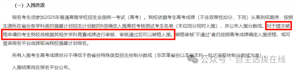 需要注意的是,2025年清华、北大、上交大、复旦、中科大、浙大、南大等10校设有破格审核环节,只有通过破格审核,才能真正获得破格入围资格。