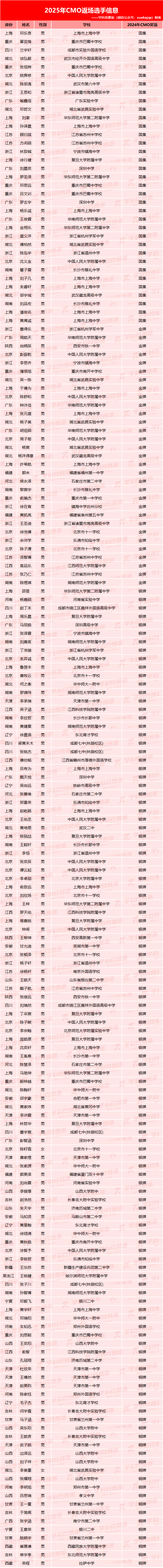 今年刚刚在IMO赛场上摘得金牌的邓乐言、张恒烨、谈弘毅、邓哲文四位同学,也再次出现在CMO参赛名单中。他们的加入,无疑将为这场顶级赛事注入更多看点,也让竞争格局更加精彩!