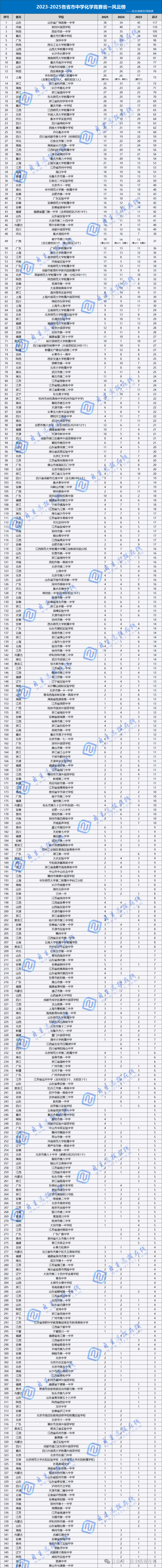 中国化学奥林匹克竞赛由中国化学会主办,始于1984年,至今已经走过40年。它是全国最高级别的中学生化学学科竞赛之一,与数学、物理、生物、信息学并列为“五大学科竞赛”,也是保送清华北大、冲刺强基计划的重要途径。以下是2023-2025年化学竞赛各省市中学榜相关内容,如有错误之处,欢迎在评论区指正。