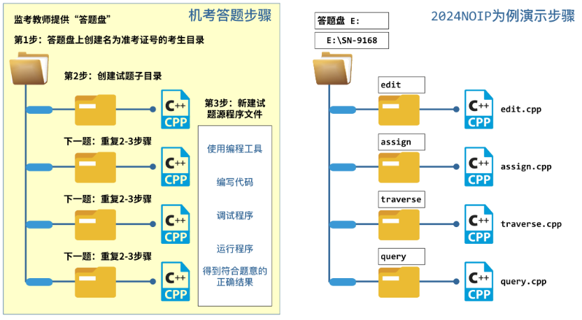 所有试题作答,必须存放在“考生目录”下,按题面规定,建立的某个试题的目录/文件夹称为“试题子目录/文件夹”,源程序文件应存放在试题子目录中,考试时不会对“不按规定的存放”进行任何提示。