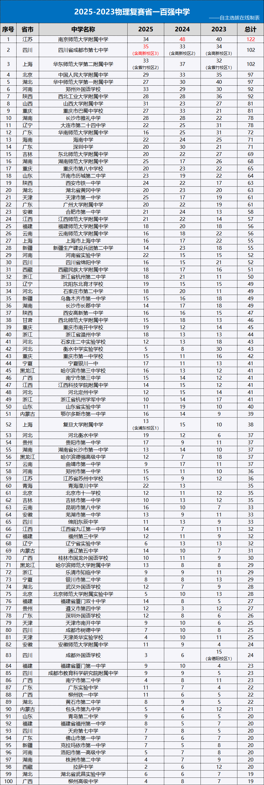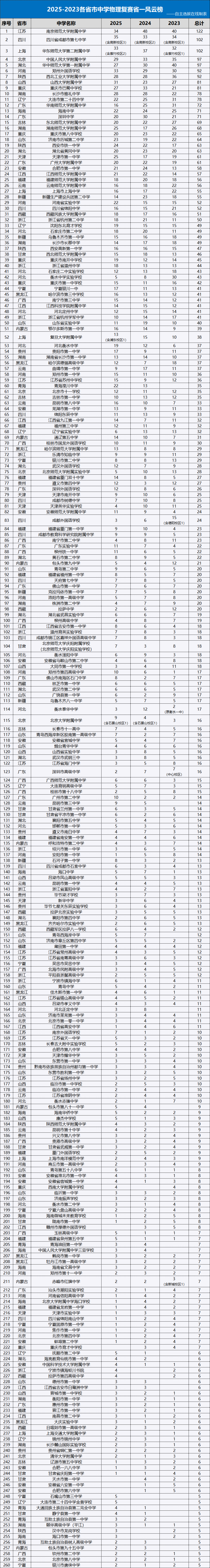 以下是近三年各中学物理竞赛完整省一排行榜,快来看看你所在省市的中学排第几?
