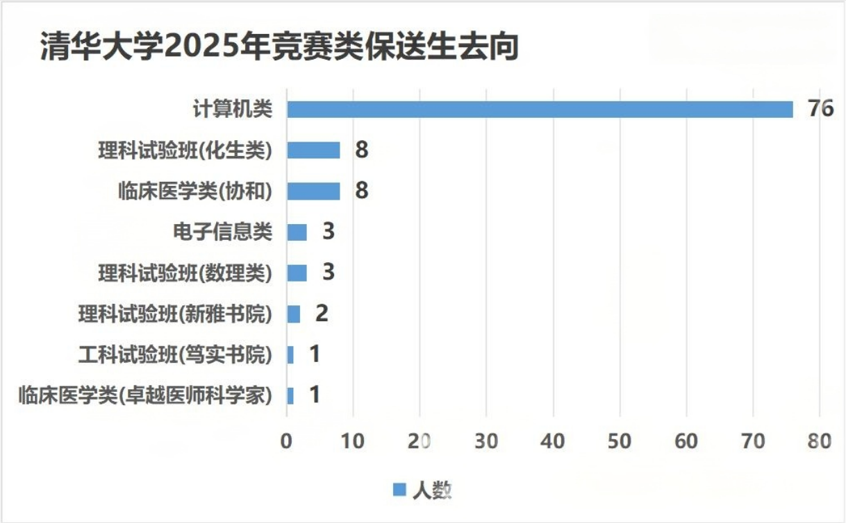 绝大多数学生来自国家集训队保送。以2025年为例,清华大学录取的102名竞赛类保送生中,76人被保送进入姚班,涵盖选择清华的信息学、数学国集全部队员、绝大部分物理国集队员,以及部分化学国集队员。