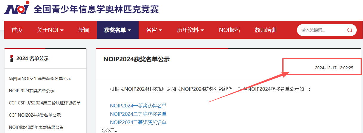 NOIP2025获奖名单何时公布?