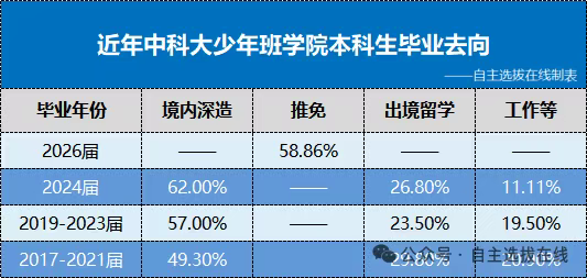 目前2026届毕业生就业数据未公布,但参考往年情况来看,中科大少年班学院毕业生的就业率和深造率非常高,接近90%。一半以上的少院毕业生选择了境内深造,20%左右的毕业生出国留学,剩下10%左右的考生选择就业。