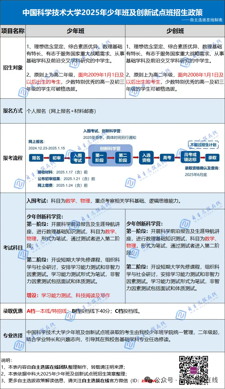 *以下内容均来源于中科大2025少年班&少创班招生简章,仅供参考,最新招生政策以2026年招生简章为准。