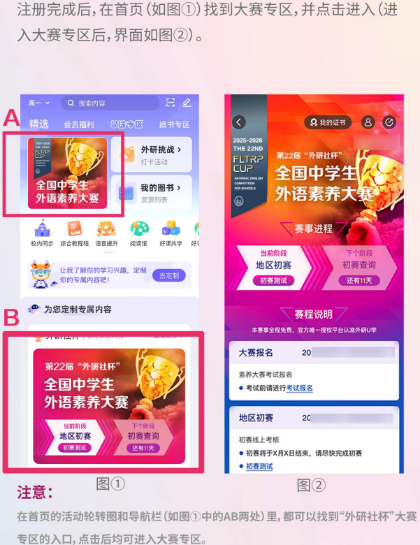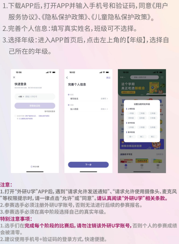 手机下载指定参赛平台“外研U学”APP(家庭版),登录大赛专区,进行大赛报名。