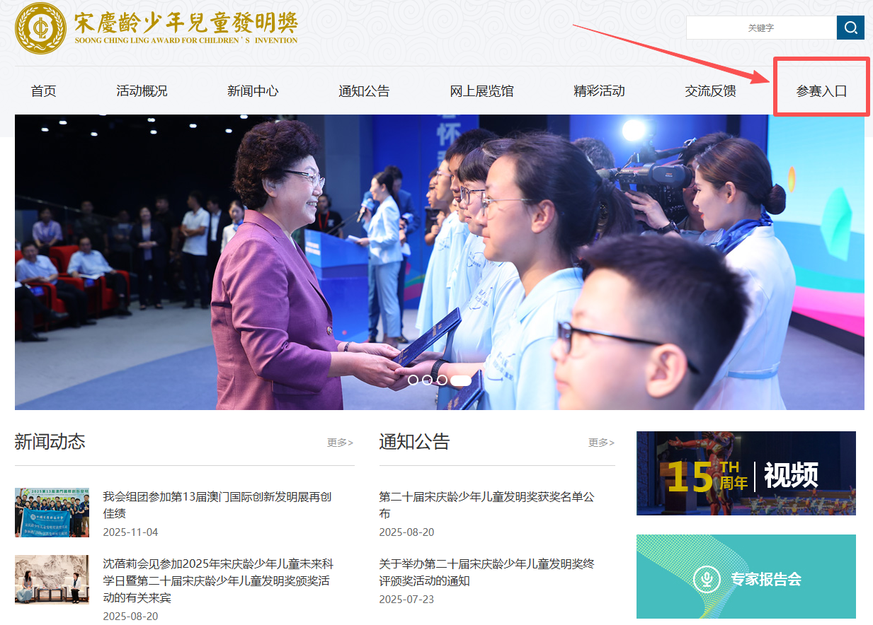 宋庆龄少年儿童发明奖(以下简称“发明奖”)旨在弘扬科学精神,传播科学知识,激发青少年好奇心、想象力和探求欲,培养青少年科学兴趣、科学精神和创新能力,厚植家国情怀,努力在青少年心中种下科学种子,为青少年搭建科学创新、国际交流的平台,培育具备科学家潜质的青少年群体。那么,从哪里进行报名?报名入口是怎样的?