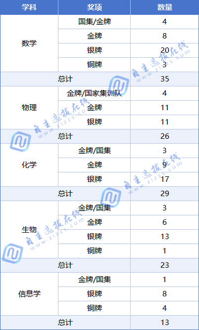 数学、物理是竞争最激烈、也是产出顶级奖项最多的学科。均有4人获得保送资格,此外,化学和生物学均有三人进入国家集训队,但化学学科获奖情况相对均衡一些,有3所学校获奖。