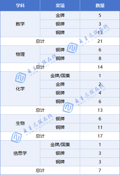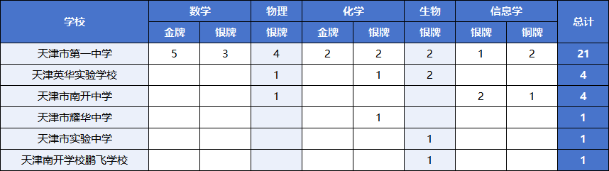 物理和化学分别获得14枚和13枚奖牌,构成了坚实的腰部力量,是竞赛体系中的重要组成部分。信息学获得7枚奖牌。虽然总数最少,但产生了天津市1位的国集选手,实现了顶尖突破,是该学科的重大亮点。信息学在天津是短板,这意味着竞争小,但同时也缺乏成熟的培养体系和成功先例,适合自学能力强,考生还是要根据自身情况选择学科竞赛。