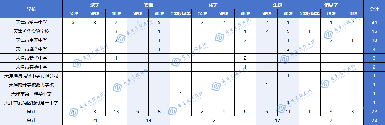 2025年五大学科竞赛决赛获奖名单正式揭晓!天津市学子表现亮眼,总计斩获72枚奖牌,彰显了雄厚的学科实力。其中,天津一中以34枚奖牌的优异成绩荣登榜首,英华实验学校与南开中学也表现不俗,分列第二、第三位。那么,各校在不同学科中的具体表现如何?哪些学子脱颖而出?现在,就让我们跟随自主选拔在线团队,一同揭晓天津五大学科竞赛的详细获奖名单,探寻这些优秀学子背后的奋斗故事!