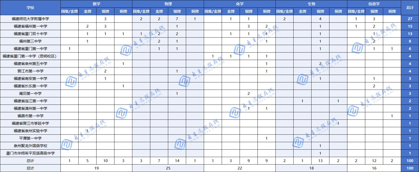 2025年五大学科竞赛的帷幕已缓缓落下,福建省学子在本届赛事中表现亮眼,共斩获100枚奖牌,9人脱颖而出,入选国家集训队,喜获清华、北大保送资格,那么,除领军学校外,福建省其他中学在此次竞赛中又取得了哪些令人瞩目的成绩?各校在不同学科领域展现了怎样的竞争优势与潜力?接下来,让我们跟随自主选拔在线团队的脚步,一同深入盘点福建各中学的获奖情况,揭秘那些闪耀在竞赛舞台背后的育人成果与奋进力量。