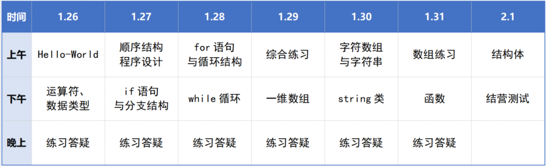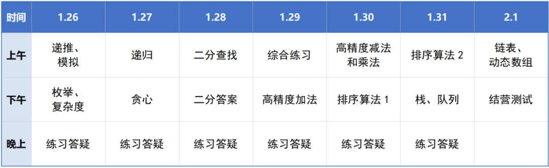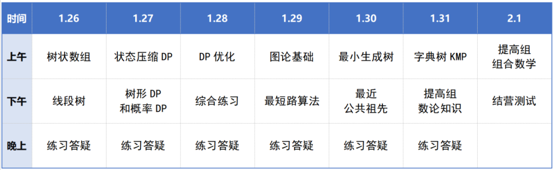 冬令营安排