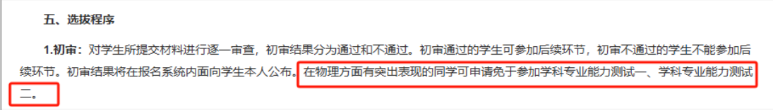 物理竞赛金牌:前一百名,免考学科能力测试一试,直接进入学科能力测试二试