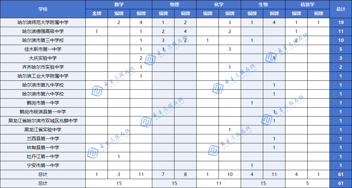 黑龙江省2025年五大学科竞赛现已圆满落幕。在本次黑龙江赛区的激烈角逐中,全省共计斩获61枚奖牌,其中哈尔滨师范大学附属中学表现尤为亮眼,共摘得19枚奖牌,位列各校之首。下方是详细的获奖名单榜单,让我们跟随自主选拔在线团队一同深入了解吧!